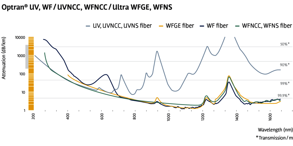 作为光纤行业的创新领导者,CeramOptec®自豪地推出其新一代高 NA 光纤 - Optran® Ultra。Optran® Ultra 光纤以其 0.37 的数值孔径提供了无与伦比的性能。 Optran® Ultra 光纤在 400 - 2400 nm 范围内表现出卓越的光谱传输。