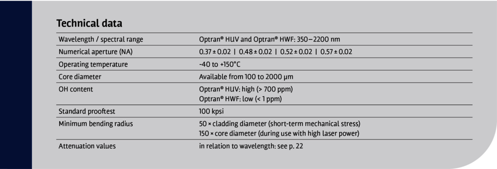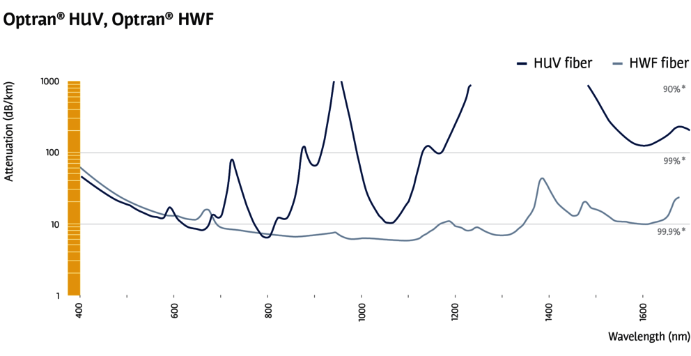 CeramOptec®提供 Optran® HUV/HWF 光纤作为石英/石英光纤的经济型替代品。它们提供高数值孔径值、最小弯曲损耗和高效连接,适用于各种应用。